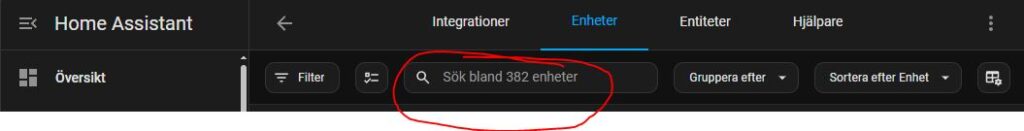 så kunde jag även få in dom i Home Assistant, vilket gör att jag där kan välja att starta och stoppa funktioner